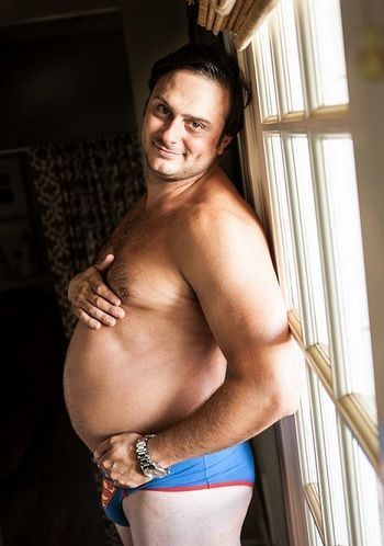 אז הוא החליט לעשות אלבום הריון במקומה עם כרס הבירה שלו. הוא שכר צלם שצילם אותו בסדרת תמונות והעלה את התמונות לאתר imgur ואלה חלק מהתמונות: